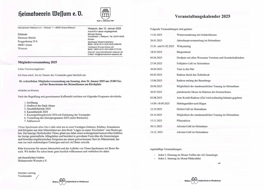 Wessum statt. Dazu sind alle Interessierten recht herzlich eingeladen.