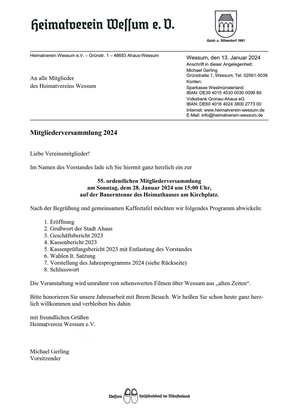 Jahreshauptversammlung des Heimatvereins Wessum 2024